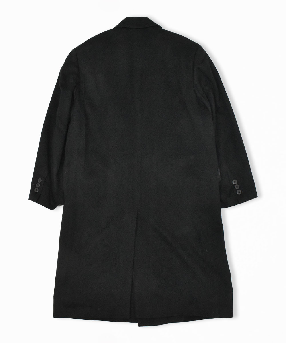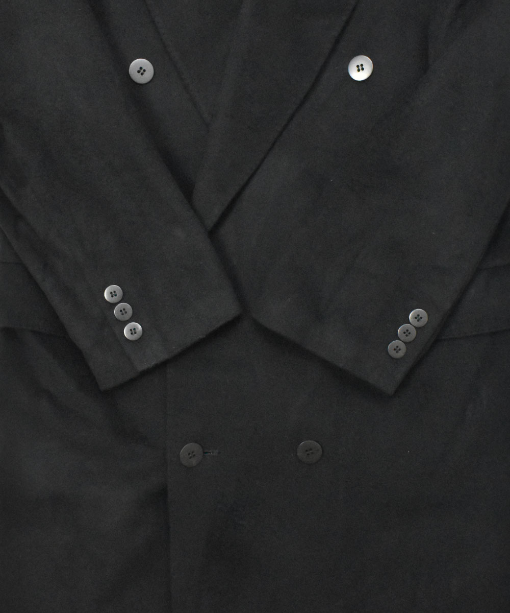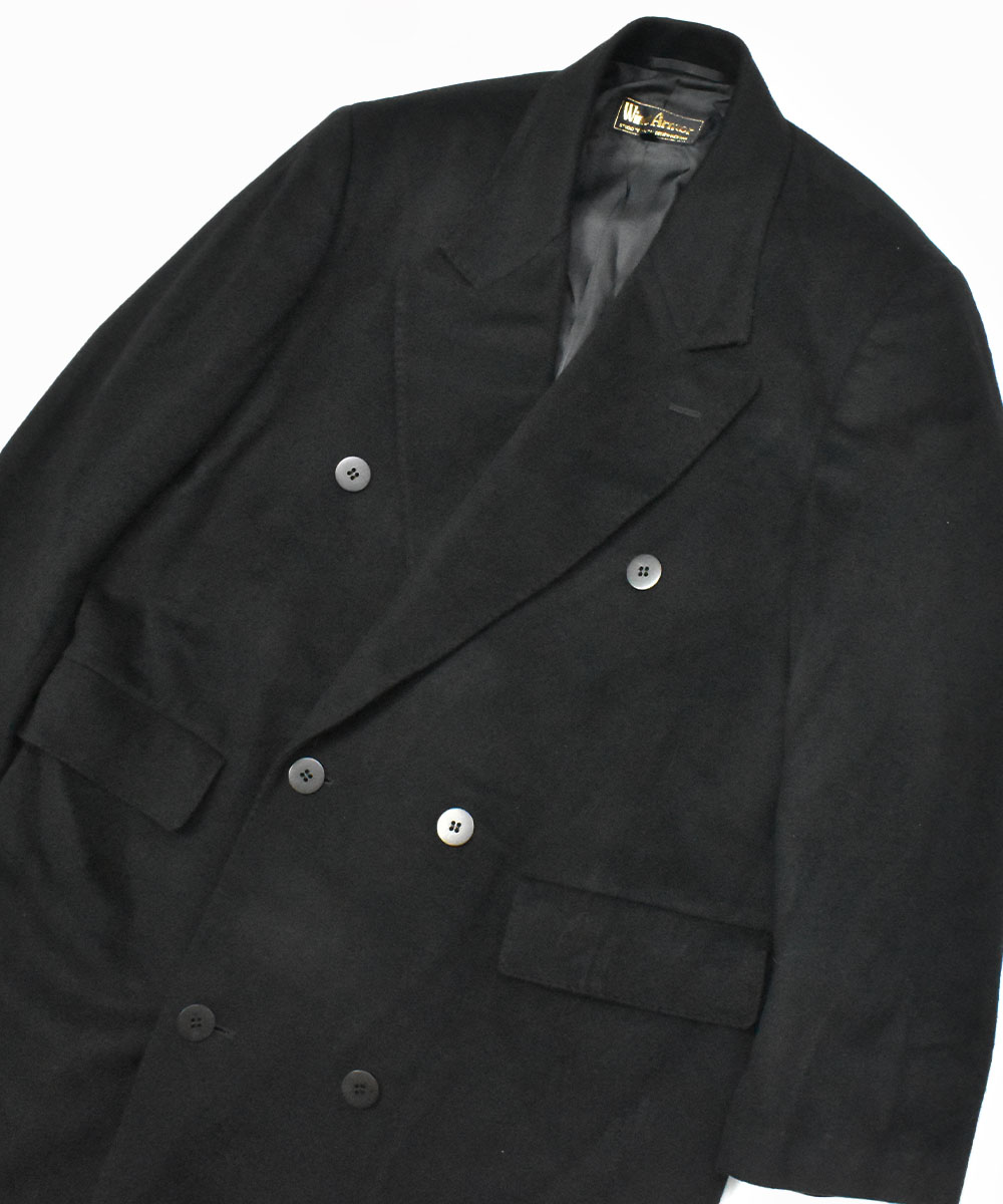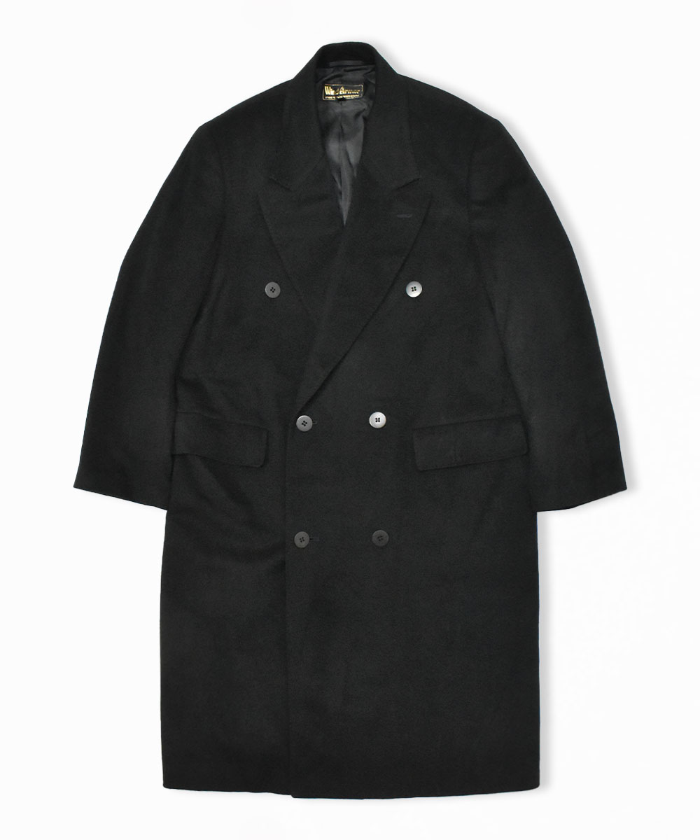 都会的な印象のカシミアダブルブレストコートで